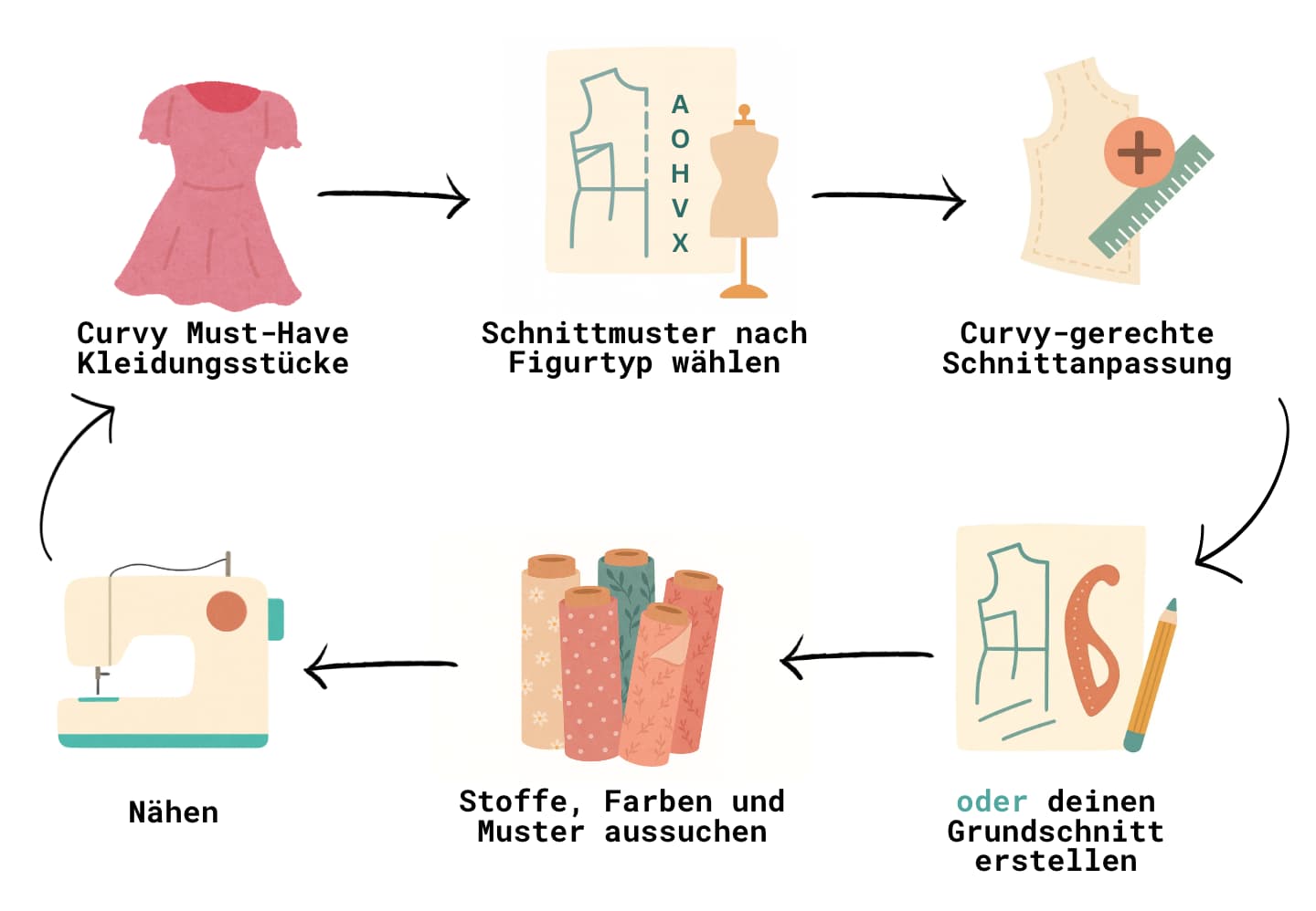 Körper sind individuell – und Kleidung von der Stange passt selten perfekt. Durch Anpassungen beim Nähen kannst du Kleidung auf deinen Figurtyp zuschneiden: